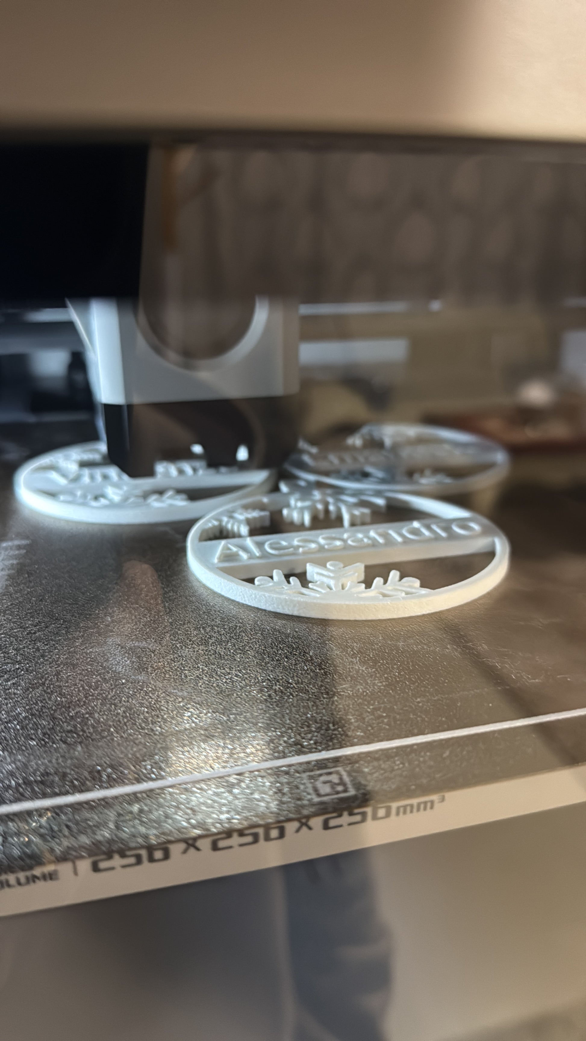 Unsere exklusiven, flachen Weihnachtskugeln aus dem 3D-Druck sind die perfekte Ergänzung für deinen festlich geschmückten Baum. Anders als klassische Kugeln wirken sie modern und elegant – und lassen sich individuell personalisieren: mit Namen, Jahreszahlen, lieben Botschaften oder kleinen Motiven – ganz nach deinem Wunsch.