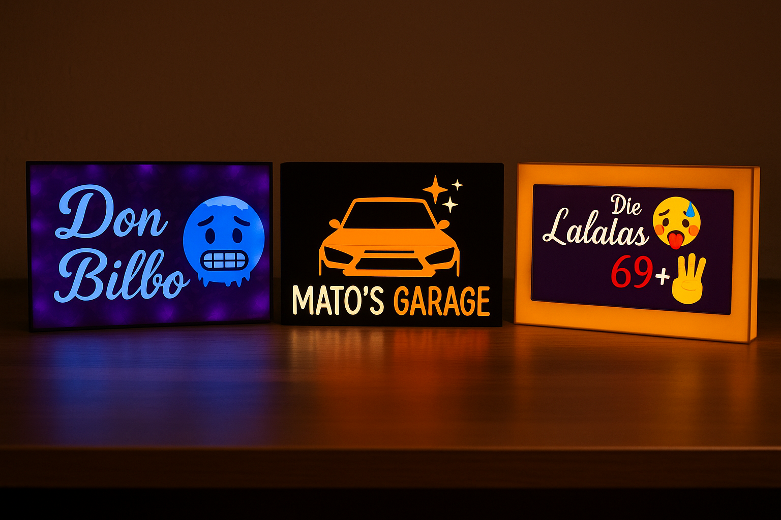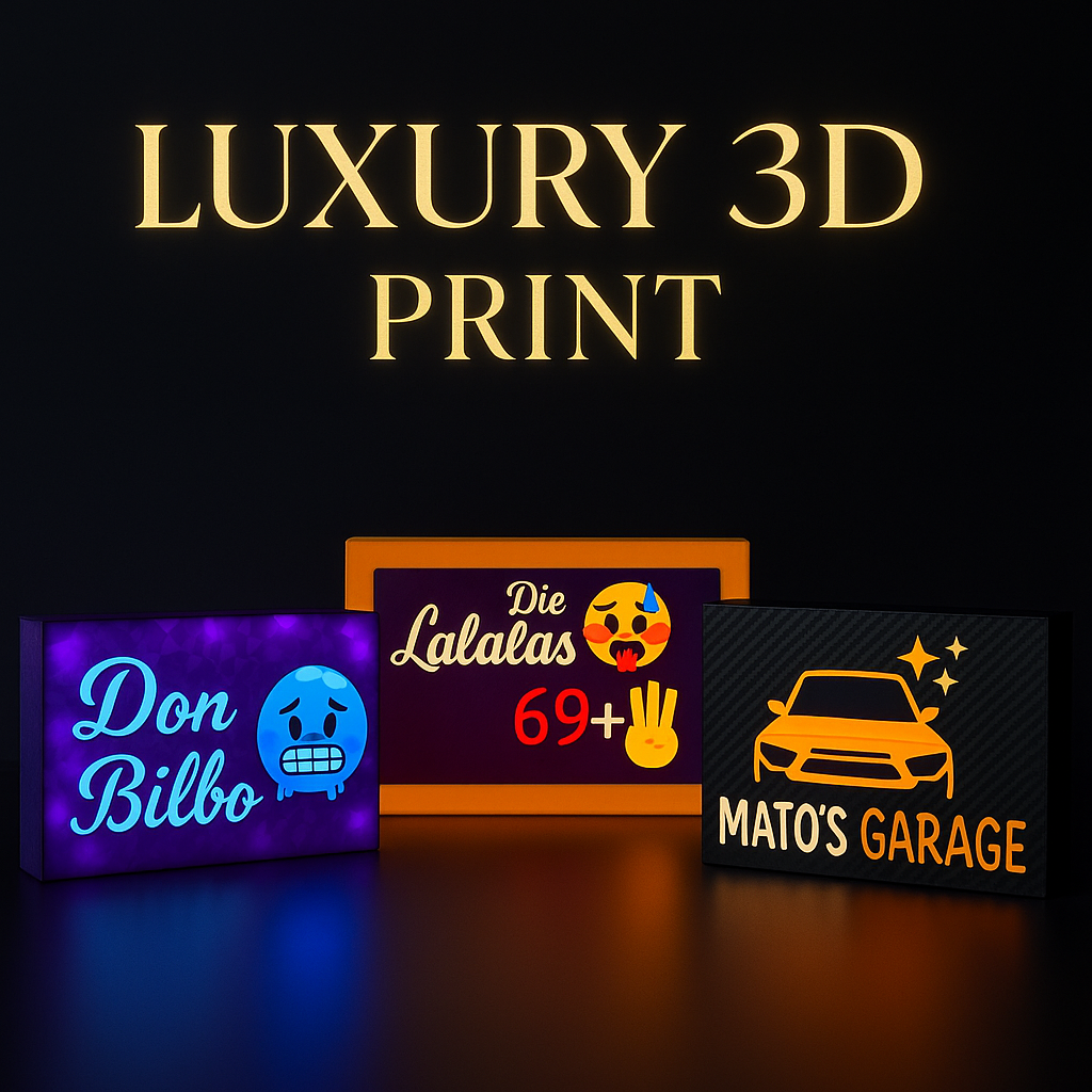 Entdecke unsere handgefertigten LED-Rahmen-Schilder, die in hochwertigem 3D-Druck aus erstklassigem PLA-Material gefertigt werden. Jedes Stück ist ein echtes Unikat – kein Massenprodukt, keine Billigqualität, sondern feinste Verarbeitung, die du sehen und fühlen kannst.